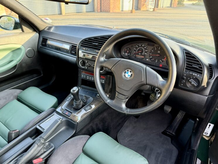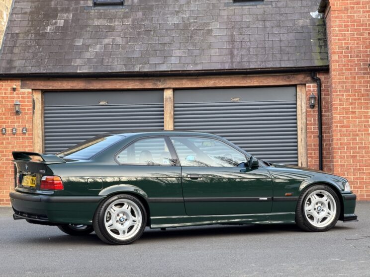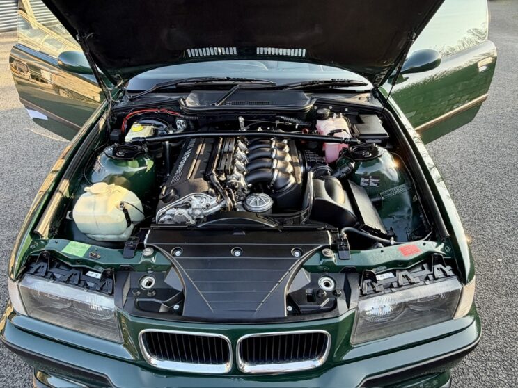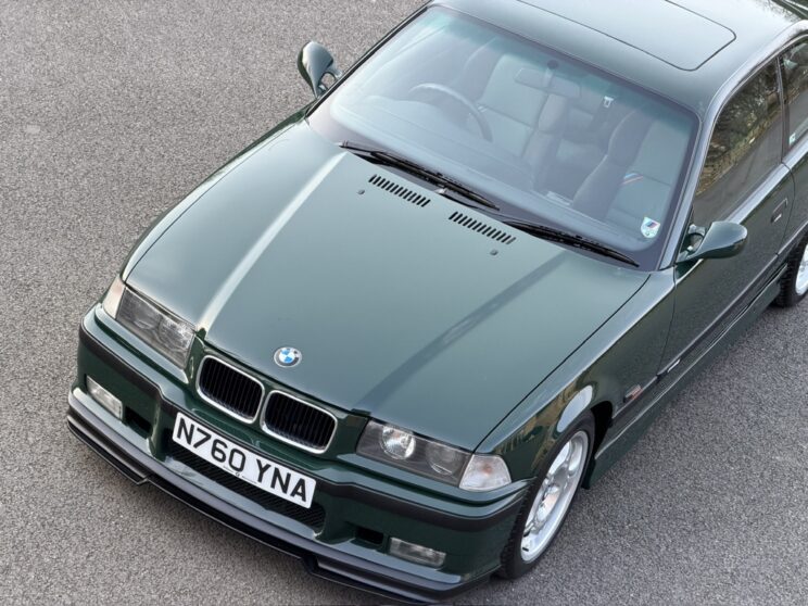 BMW built 306 left-hand drive GT’s sold on the continent, with just 50 right hand drive cars sent across the channel for the Brits to enjoy. These 50 UK cars weren’t a perfect match to the Euro GTs, doing away with the engine upgrades and so ‘officially’ put out the same 286hp as a standard M3, but it’s generally believed the UK M3 GTs were a bit more potent than BMW claimed. However, the 50 UK GTs still received the same chassis and suspension upgrades as the Euro cars as well as the adjustable Class II homologation front splitter, BMW M strut brace, taller rear wing, 17” BMW Motorsport forged and polished alloy wheels and lighter aluminium doors. All 50 cars were finished in British Racing Green, with stunning Mexico green leather, part Alcantara seats, carbon / graphite birdseye maple dash, console & glove box trim and BMW Motorsport badging throughout. UK-spec or not, the M3 GT is without doubt the most interesting and rarest E36 we got in Britain.